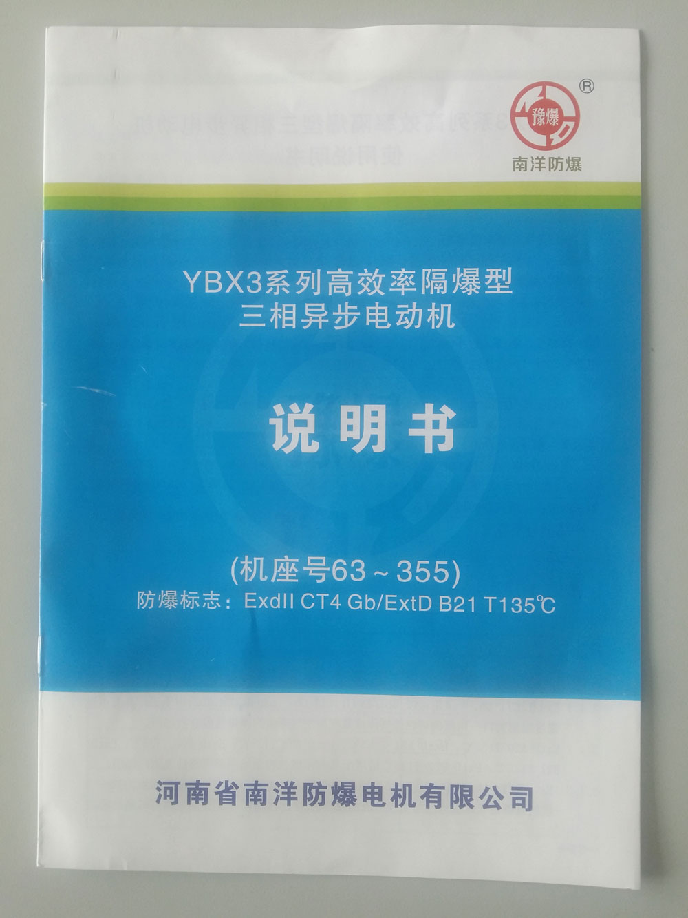 YBJ系列防爆電機說明書: 本說明書為YBJ系列防爆電機說明書掃描版。 為了方便在本公司訂購防爆電機的客戶的使用安全性和便捷性,免費為用戶提供說明...