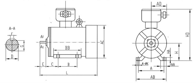 YBX3防爆電機B5安裝方式對應圖表